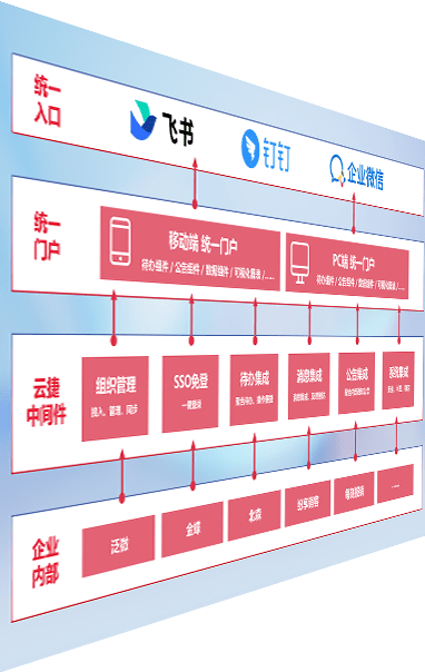 对协作平台提供支持服务,,,支持企业应用与协作平台对接,,,包含组织同步、、消息集成、、、、待办集成等。。支持目前主流的协作平台:钉钉、、、企微和飞书。。